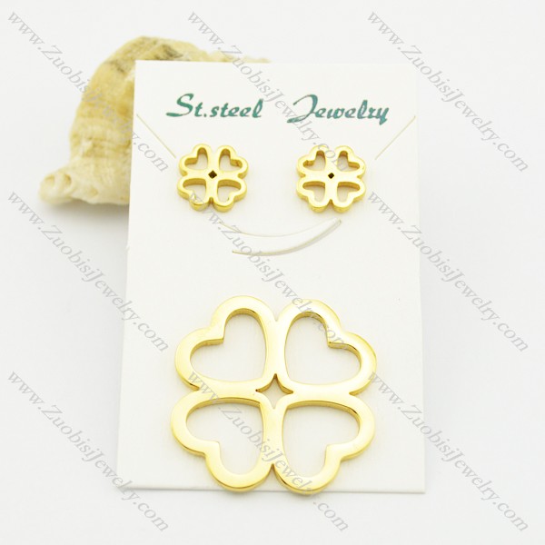 gold plating four-leaf clover pendant and earring set s000931