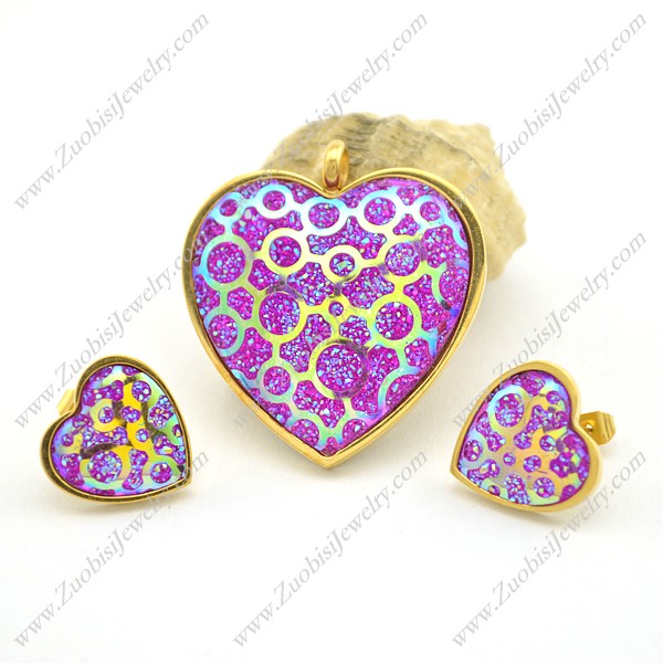 Purple Heart Jewelry Set in Gold Plating s001031