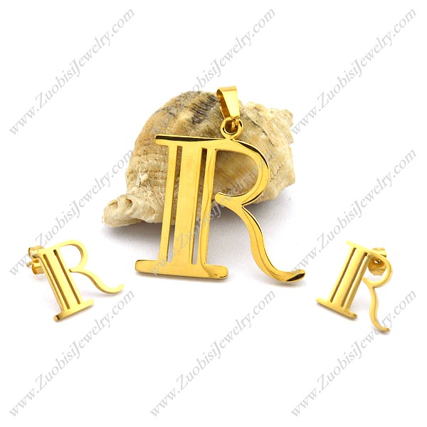 R Stainless Steel Jewelry Set in Gold Plated s001275
