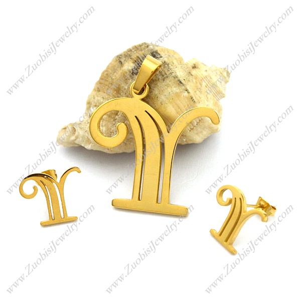 Gold-Plating Y Pendant and Earring s001282