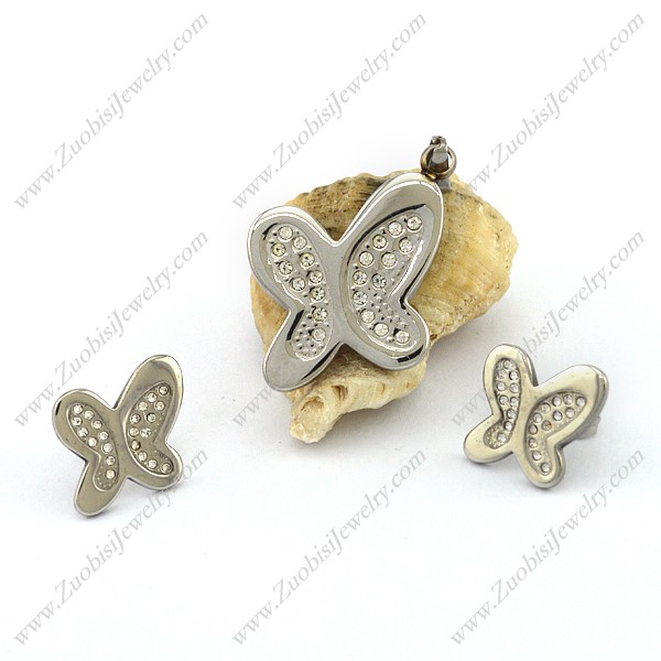 Stainless Steel Butterfly Pendant and Earring s001327