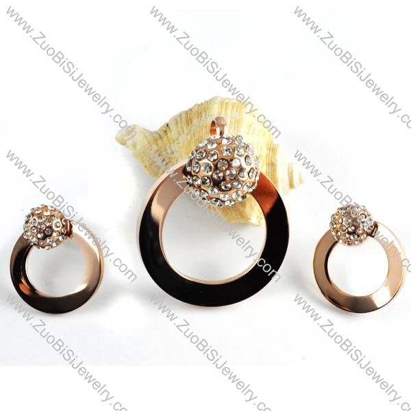 Rose Gold Rhinestone Ball Jewelry Set in Steel -s000008