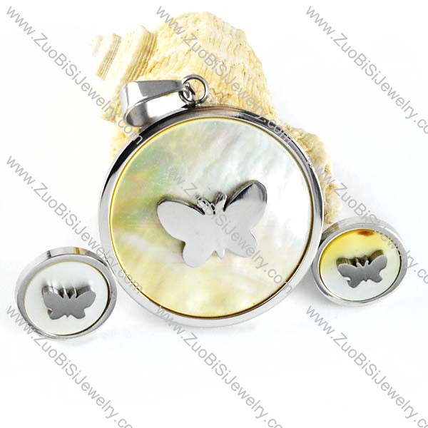 Silver Steel Butterfly jewelry set with shell -s000017