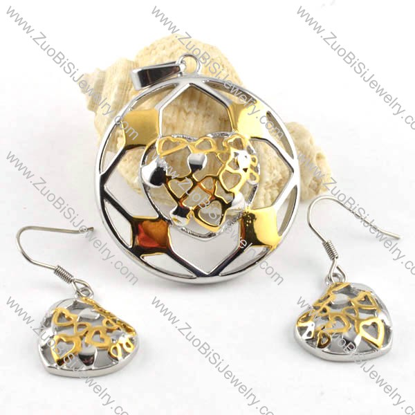 Hollow Round Stainless Steel jewelry set in two tones -s000024