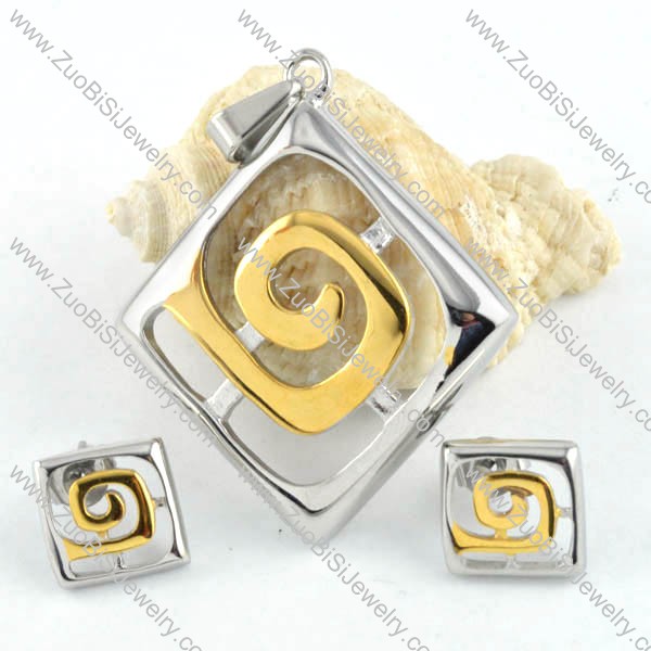 Two Tones Diamond Stainless Steel jewelry set -s000030