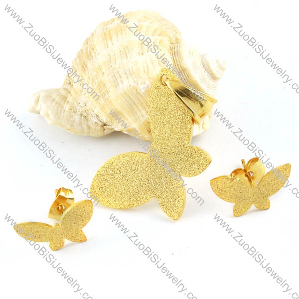Gold Abrasive Blasting Stainless Steel Butterfly jewelry set-s000069