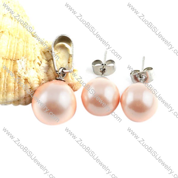 Pink Stainless Steel Pearl jewelry set-s000072