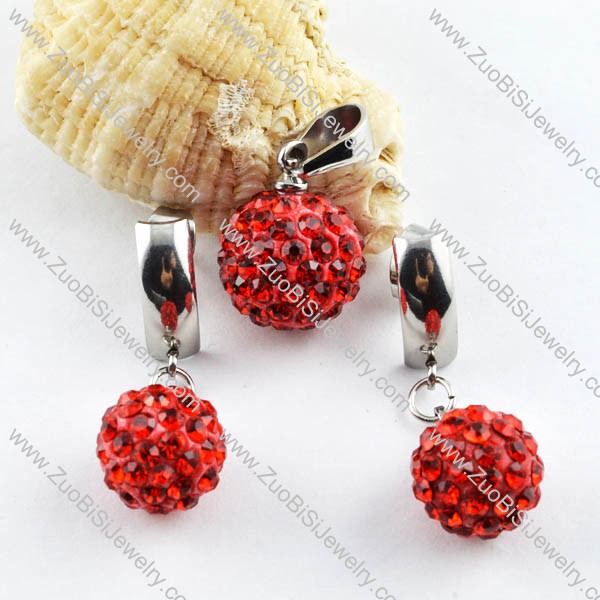 Stainless Steel jewelry set with Red Crystal Ball -s000081