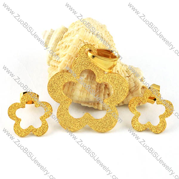 Gold Blasting Stainless Steel Flower Bud Jewelry Set -s000087