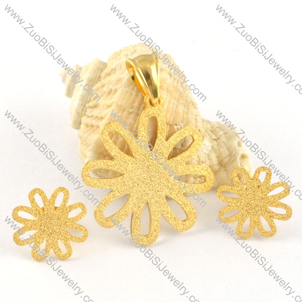 Golden Flower Stainless Steel jewelry set-s000100