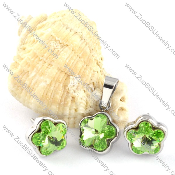 Clear Green Crystal Flower Stainless Steel Jewelry Set -s000107
