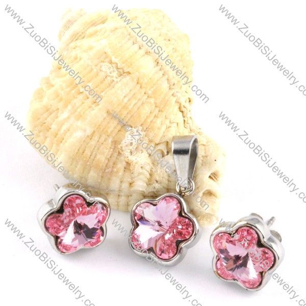 Clear Pink Plum Blossom Stainless Steel jewelry set-s000114
