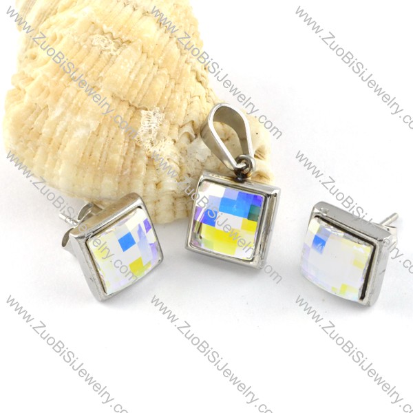 Square Colorful Crystal Mosaic Stainless Steel jewelry set-s000115