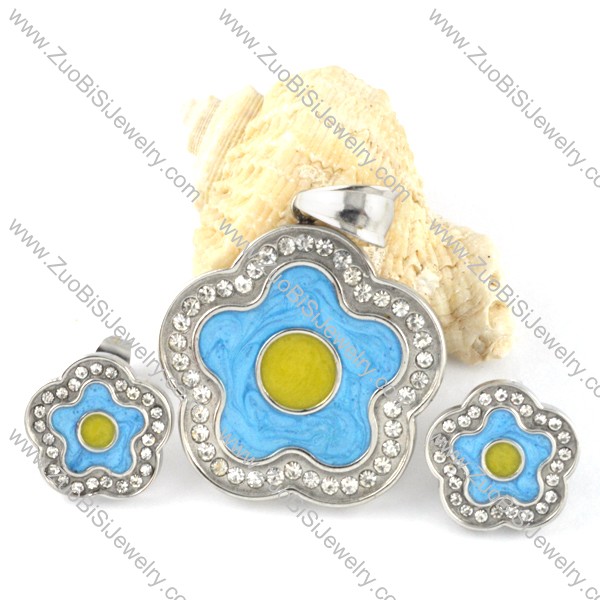 Epoxy Turquoise Plum Blossom Stainless Steel jewelry set-s000117