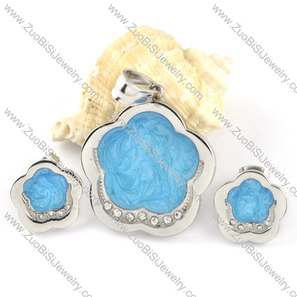 Blue Epoxy Plum Blossom Stainless Steel jewelry set-s000124