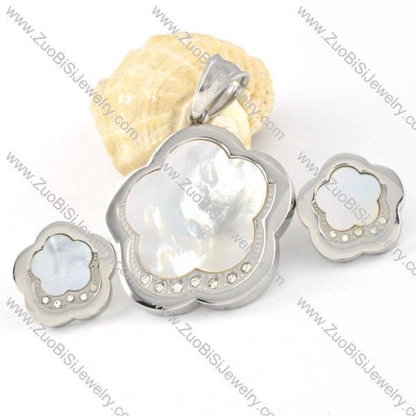 White Shell Plum Blossom Stainless Steel jewelry set-s000125