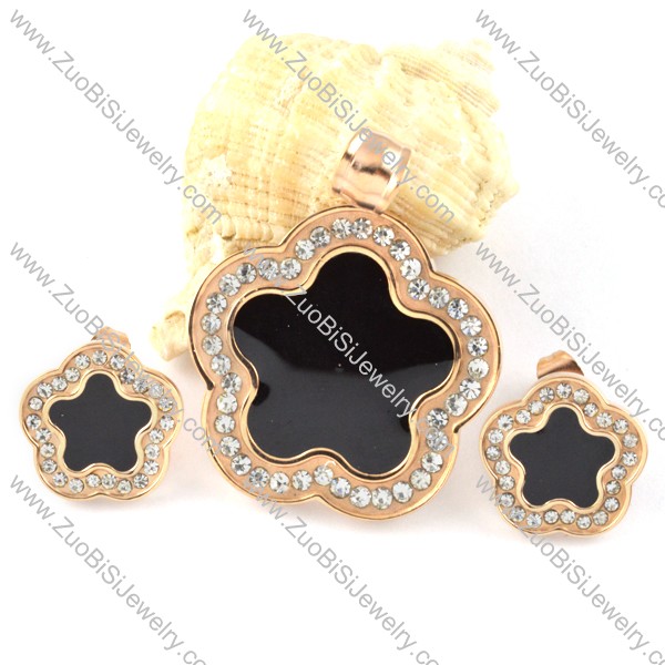 Rose Gold Plum Blossom Stainless Steel jewelry set-s000136
