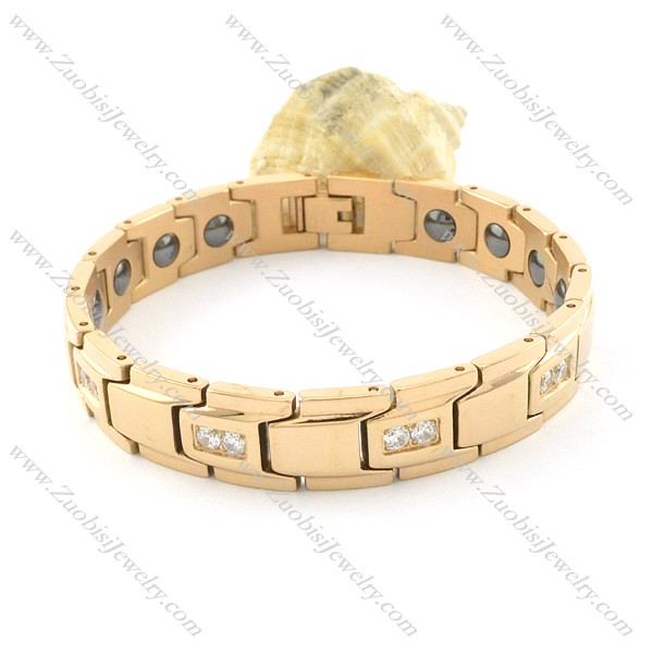 gold plating stainless steel bracelet CNC clear stones b001651