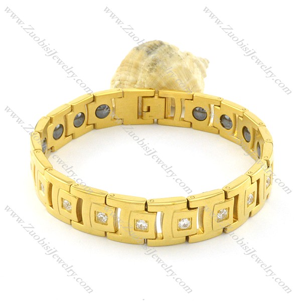 gold plating stainless steel bracelet CNC clear stones b001655