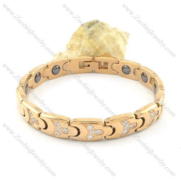 gold plating stainless steel bracelet CNC clear stones b001667