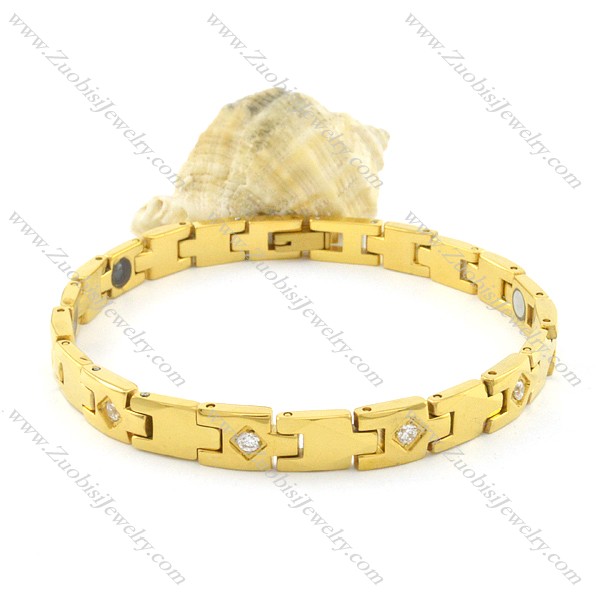 gold plating stainless steel bracelet CNC clear stones b001683