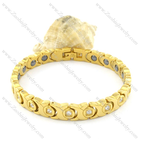 gold plating stainless steel bracelet CNC clear stones b001685