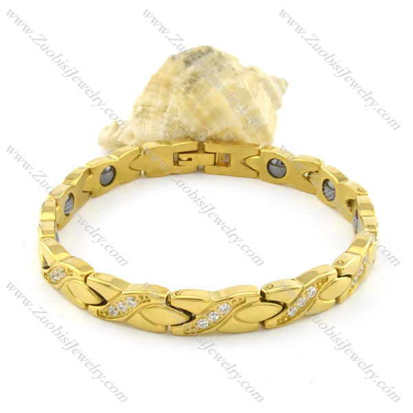 gold plating stainless steel bracelet CNC clear stones b001690