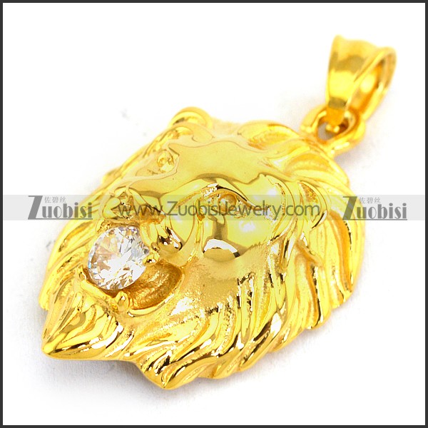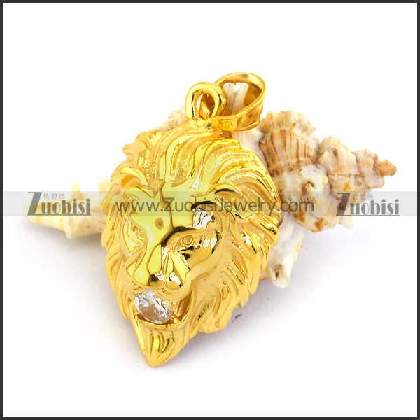 Shiny Gold Plating Lion Head Pendant p003349