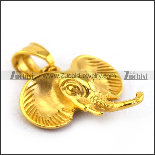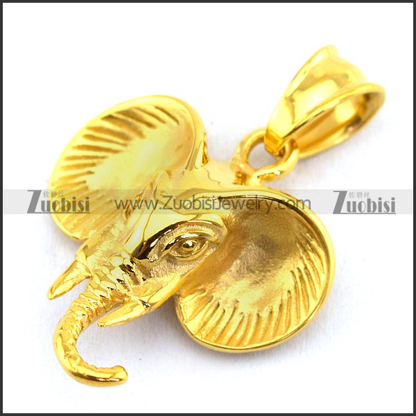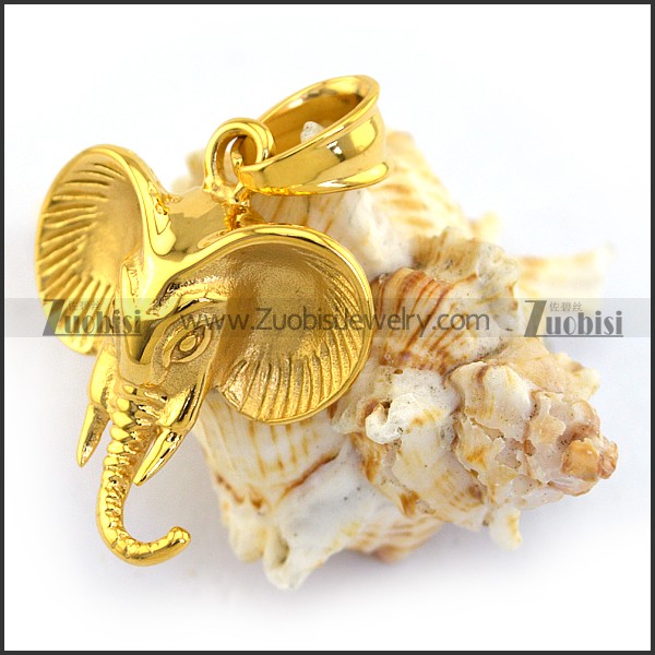 Stainless Steel Elephant Head Pendant in Gold Finishing p003387