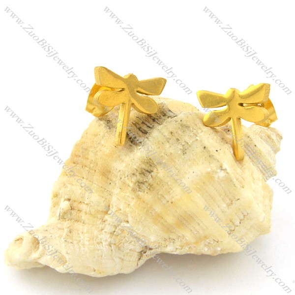 Yellow Gold Unique Cutting Dragonfly Earring in Stainless Steel -e000600