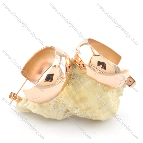 shiny rose gold smooth stainless steel earring e000789