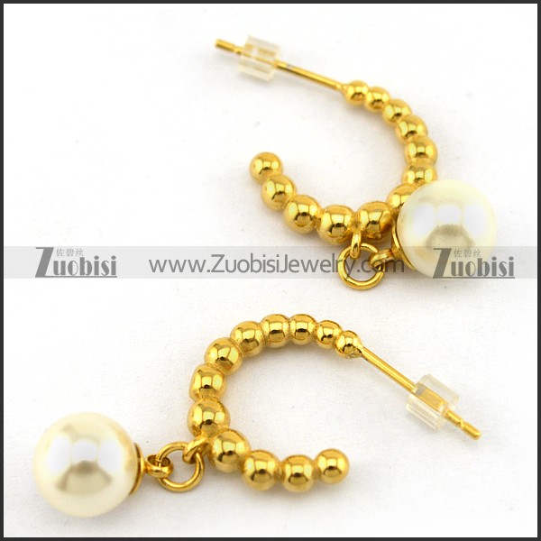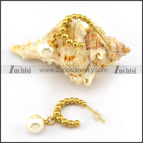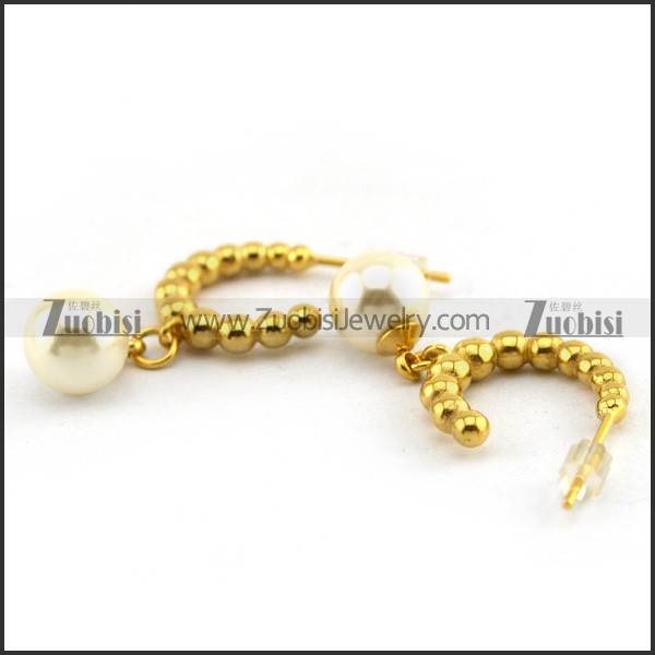 Shiny Gold Steel Bead Earring Hoop with Pearl e001217