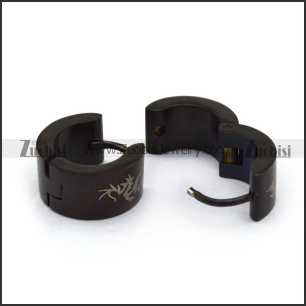 Black Stainless Steel Cutting Dragon Earrings -e000100