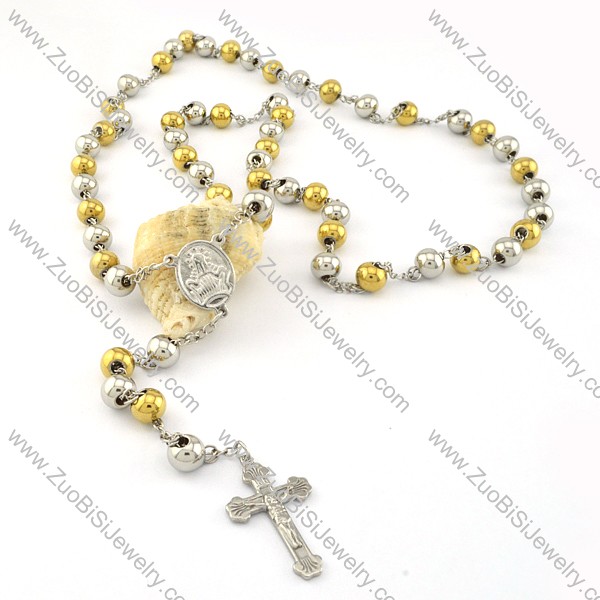 gold and steel tone rosary necklace made in China -n000276