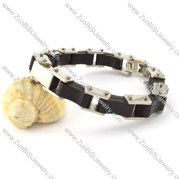 Black Rubber Bracelets in Stainless Steel Metal -b001278