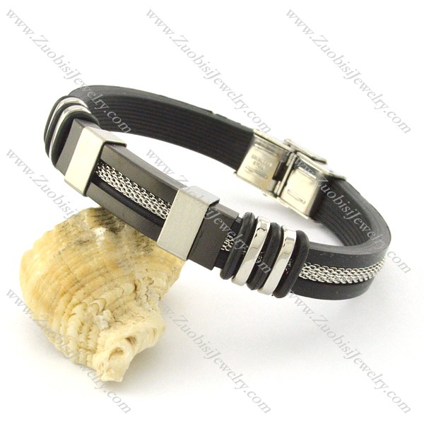 rubber bracelet with stainless steel parts b001702