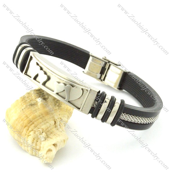 rubber bracelet with stainless steel parts b001706