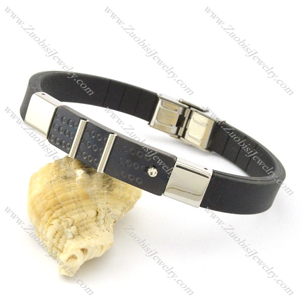 rubber bracelet with stainless steel parts b001722