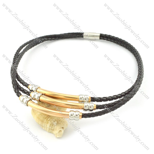 wholesale leather necklace with rose gold stainless steel tube n000453