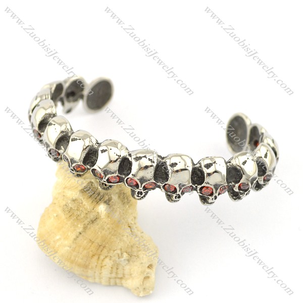 16 small skull heads bangle with clear red zircons b002305