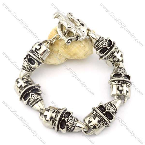 6 big skull head with cross bracelet -b001475
