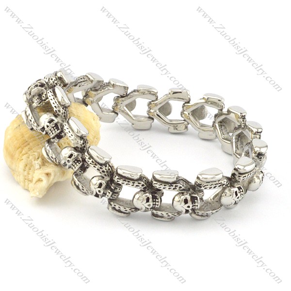 casting biker bracelet linked by skull heads b002042