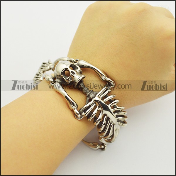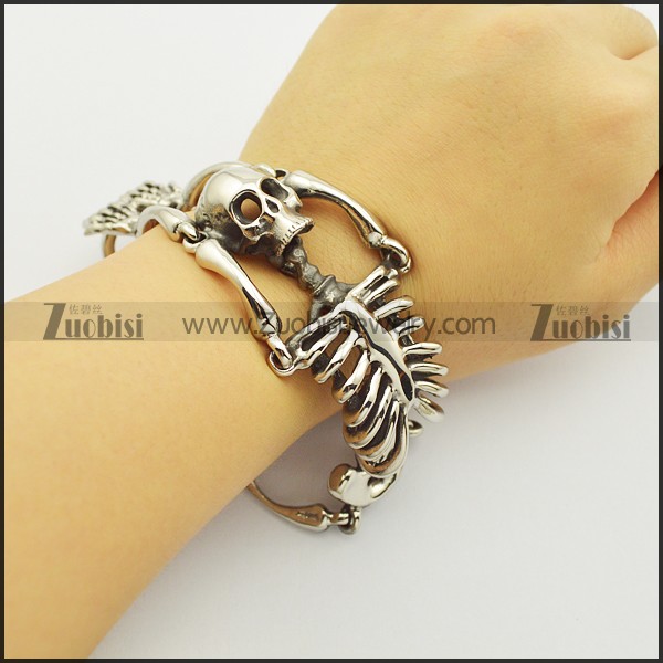 Stainless Steel Human Skeleton Bracelet for Punk Fans in 36mm Wide 21cm Long b003019