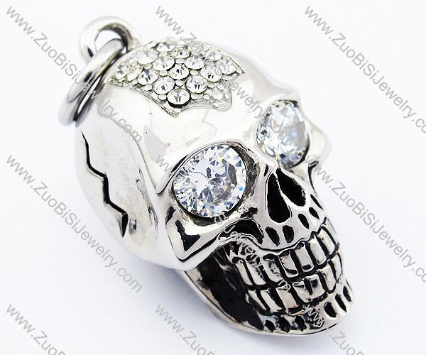 Big Clear Crystal Eye Stainless Steel Skull pendant - JP300022