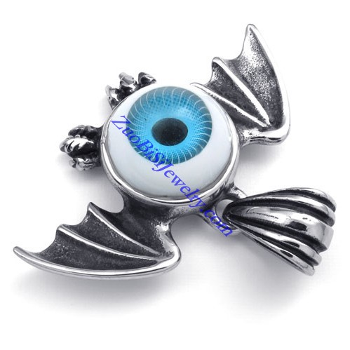 Blue Round Evil Eye Pendant Crafted Casting Bat in Stainless Steel -JP450002