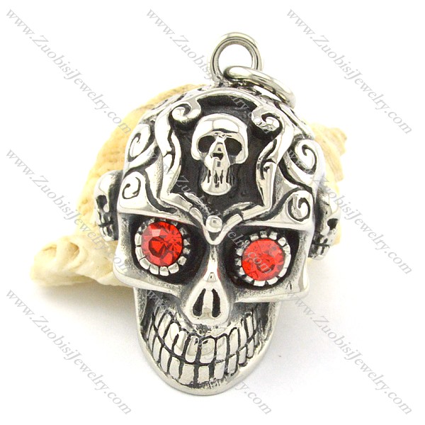 casting skull pendant with little skull on head & 2 red eyes p001363