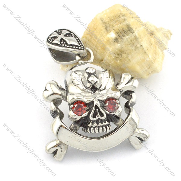 skull and crossbones pendant with 2 clear red zircon eyes p001520