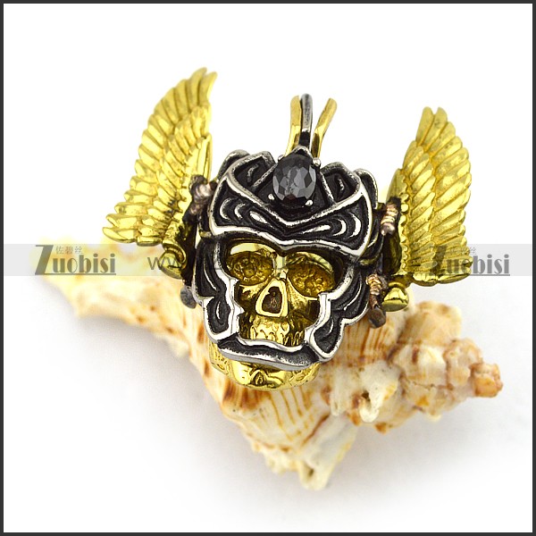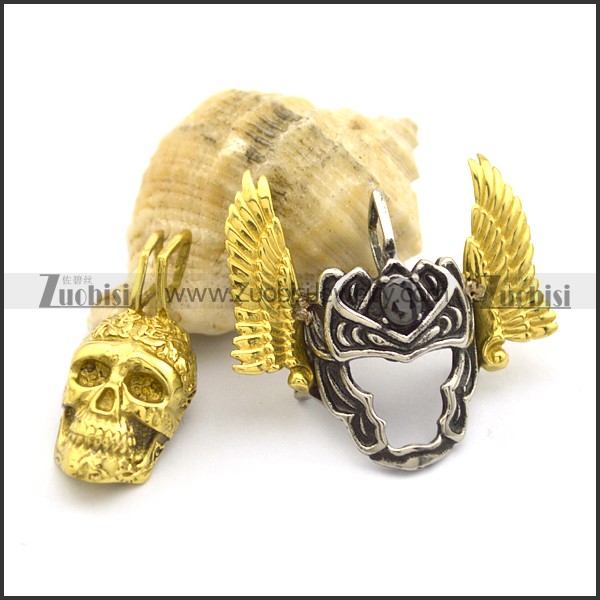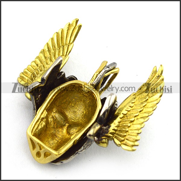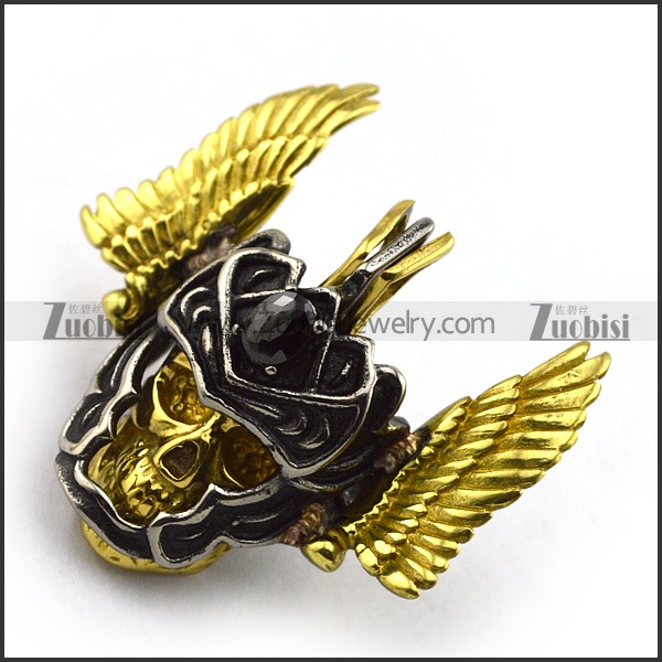 detachable skull head and gold wing pendant p002033