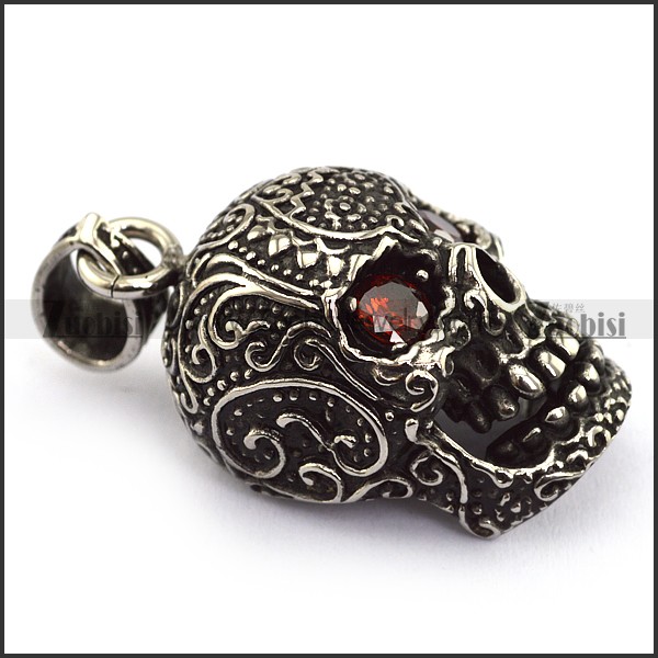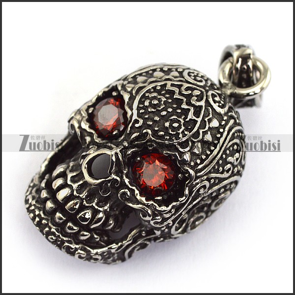 two ruby crystal eyes flower skull pendant p002080