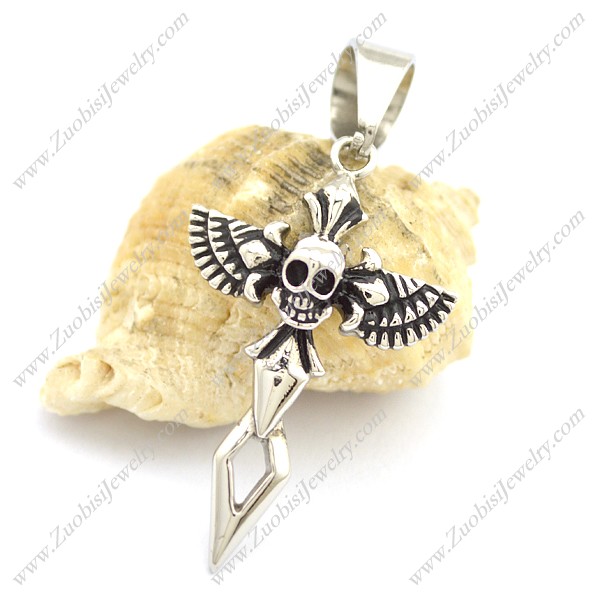 Skull with Wings Cross Pendant p002226